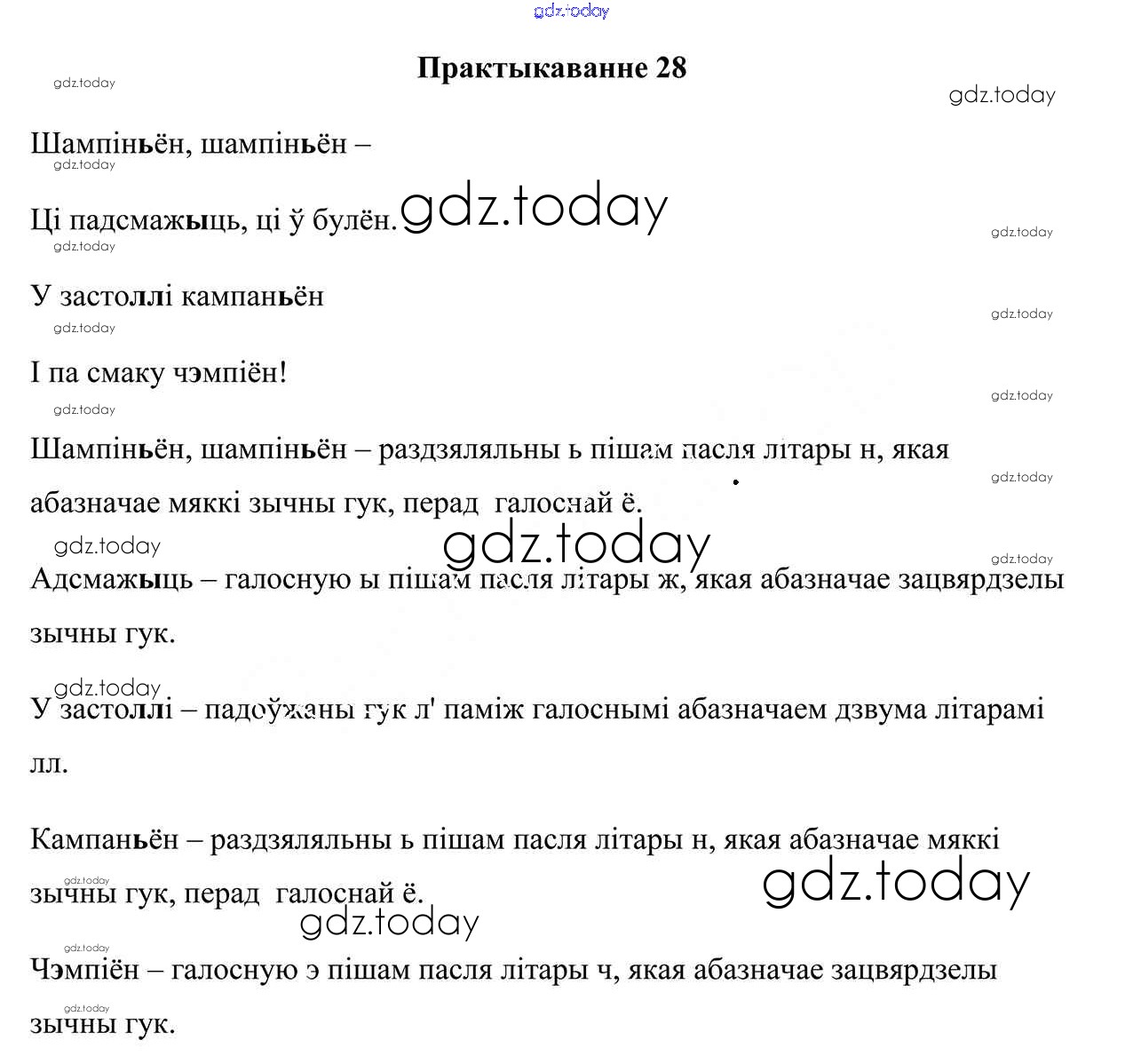 На страницах сайта gdz.today вы найдете учебный и вспомогательный материал, направленный на улучшения знаний школьной программы. ГДЗ - онлайн мир знаний Рашальнік да часткі 1. Практыкаванні 28 Учебнику по Белорусскому языку для 3 класса Свірыдзенка Национальный институт образования 2017