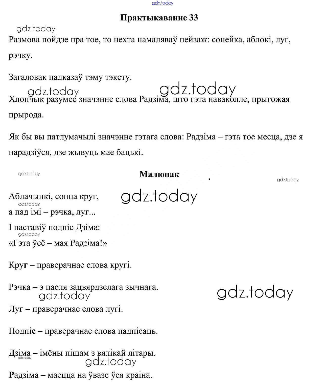 На страницах сайта gdz.today вы найдете учебный и вспомогательный материал, направленный на улучшения знаний школьной программы. ГДЗ - онлайн мир знаний Рашальнік да часткі 1. Практыкаванні 33 Учебнику по Белорусскому языку для 3 класса Свірыдзенка Национальный институт образования 2017