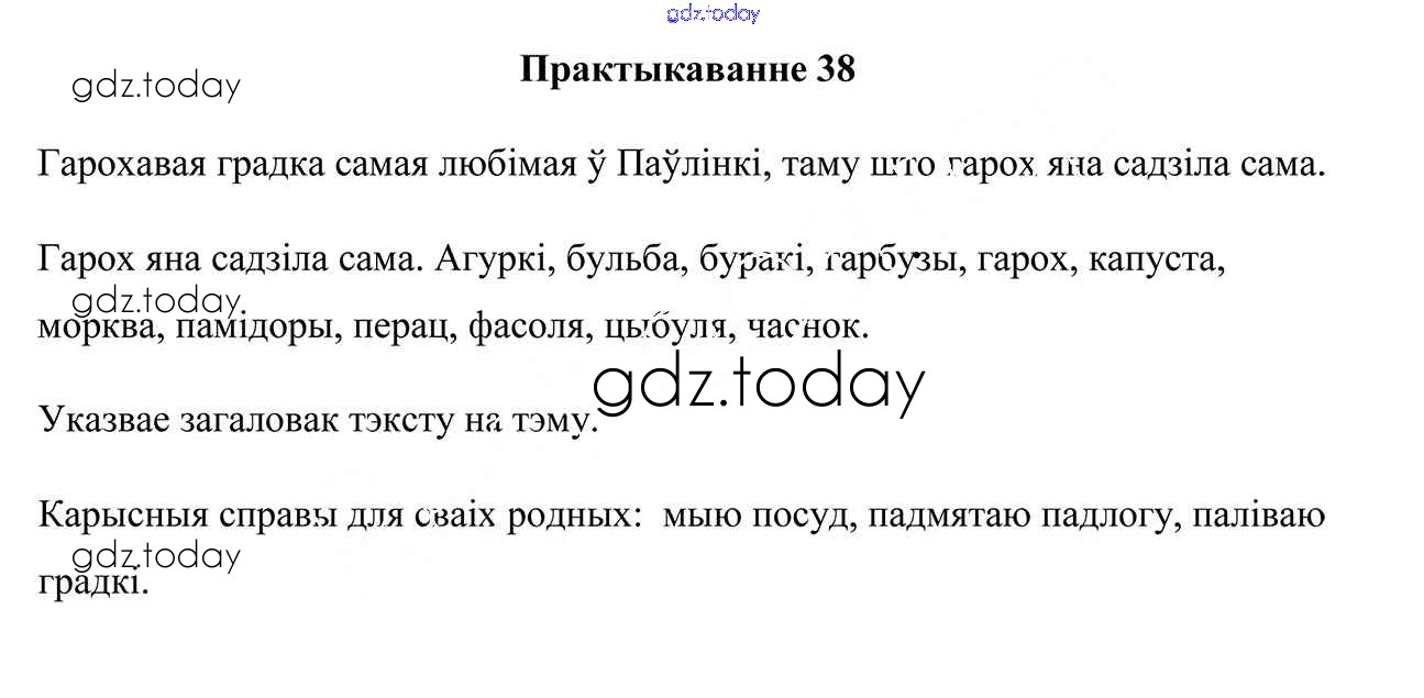 На страницах сайта gdz.today вы найдете учебный и вспомогательный материал, направленный на улучшения знаний школьной программы. ГДЗ - онлайн мир знаний Рашальнік да часткі 1. Практыкаванні 38 Учебнику по Белорусскому языку для 3 класса Свірыдзенка Национальный институт образования 2017