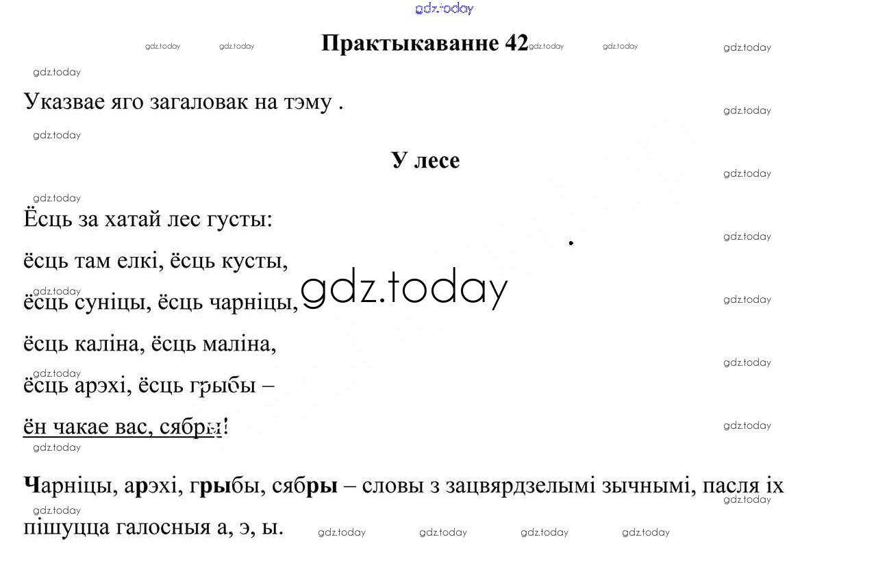 На страницах сайта gdz.today вы найдете учебный и вспомогательный материал, направленный на улучшения знаний школьной программы. ГДЗ - онлайн мир знаний Рашальнік да часткі 1. Практыкаванні 42 Учебнику по Белорусскому языку для 3 класса Свірыдзенка Национальный институт образования 2017