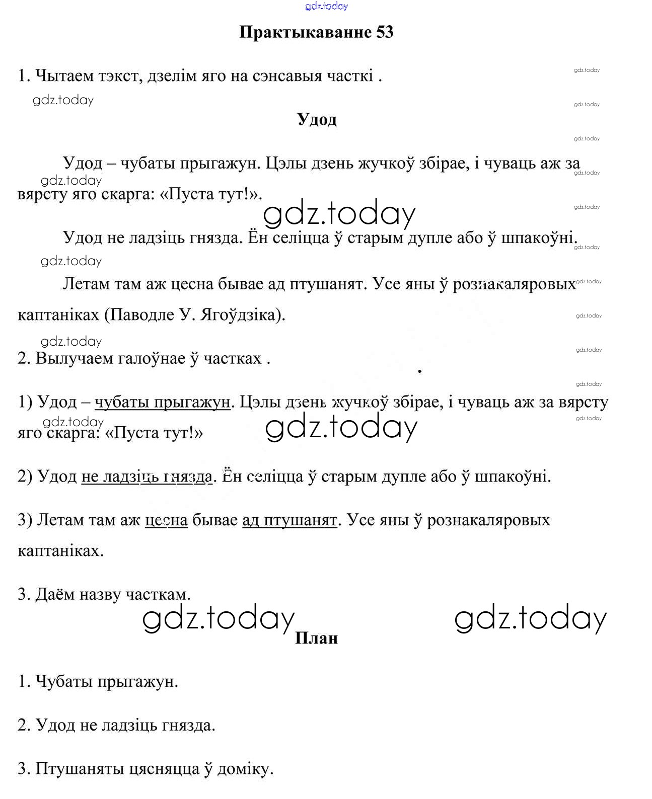 На страницах сайта gdz.today вы найдете учебный и вспомогательный материал, направленный на улучшения знаний школьной программы. ГДЗ - онлайн мир знаний Рашальнік да часткі 1. Практыкаванні 53 Учебнику по Белорусскому языку для 3 класса Свірыдзенка Национальный институт образования 2017
