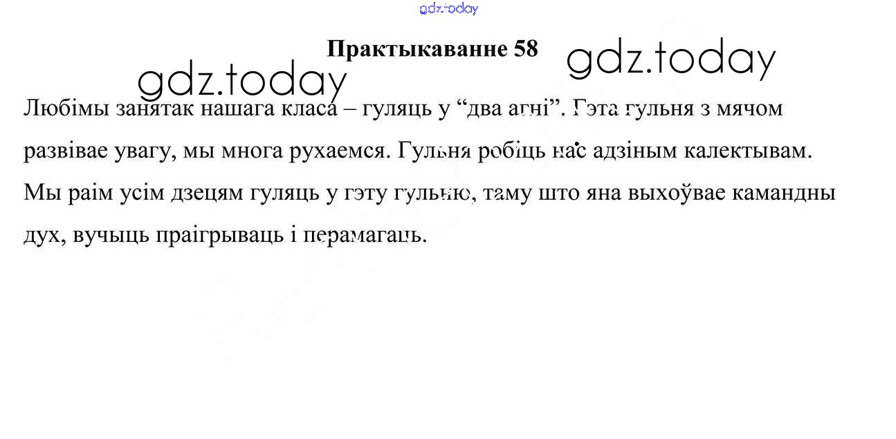На страницах сайта gdz.today вы найдете учебный и вспомогательный материал, направленный на улучшения знаний школьной программы. ГДЗ - онлайн мир знаний Рашальнік да часткі 1. Практыкаванні 58 Учебнику по Белорусскому языку для 3 класса Свірыдзенка Национальный институт образования 2017