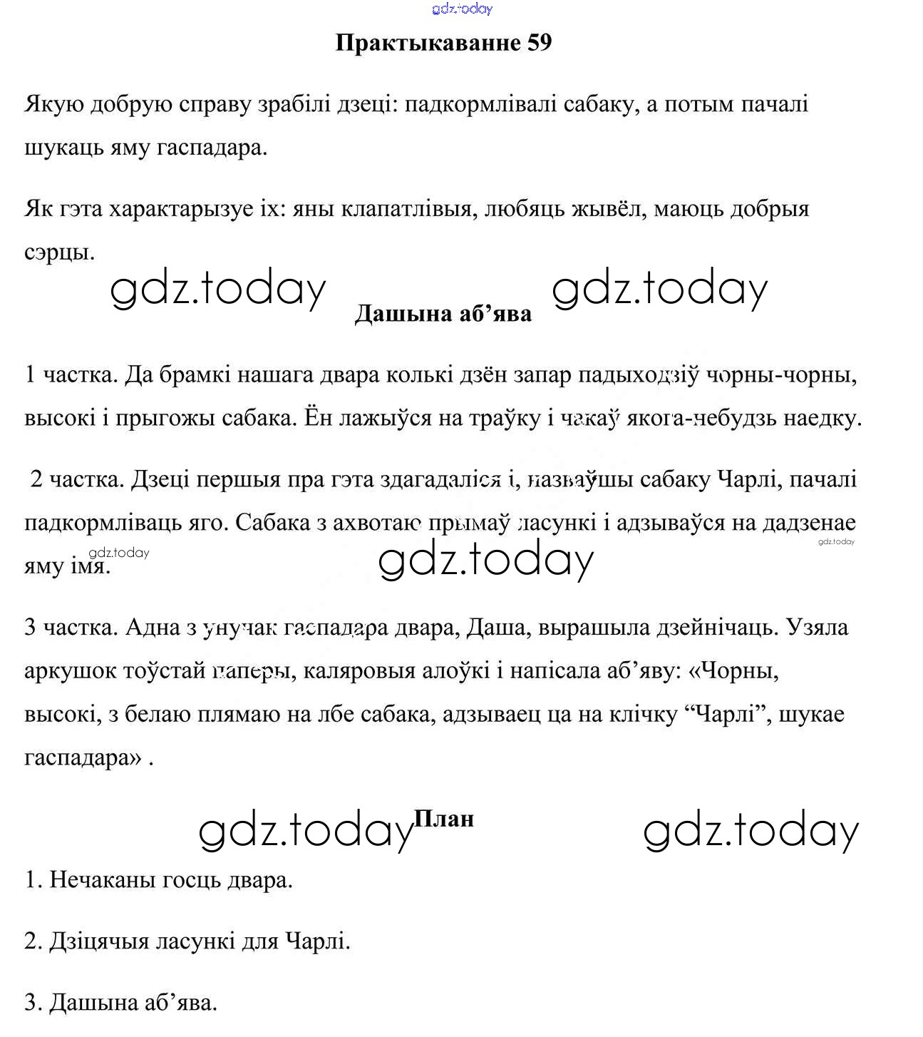 На страницах сайта gdz.today вы найдете учебный и вспомогательный материал, направленный на улучшения знаний школьной программы. ГДЗ - онлайн мир знаний Рашальнік да часткі 1. Практыкаванні 59 Учебнику по Белорусскому языку для 3 класса Свірыдзенка Национальный институт образования 2017