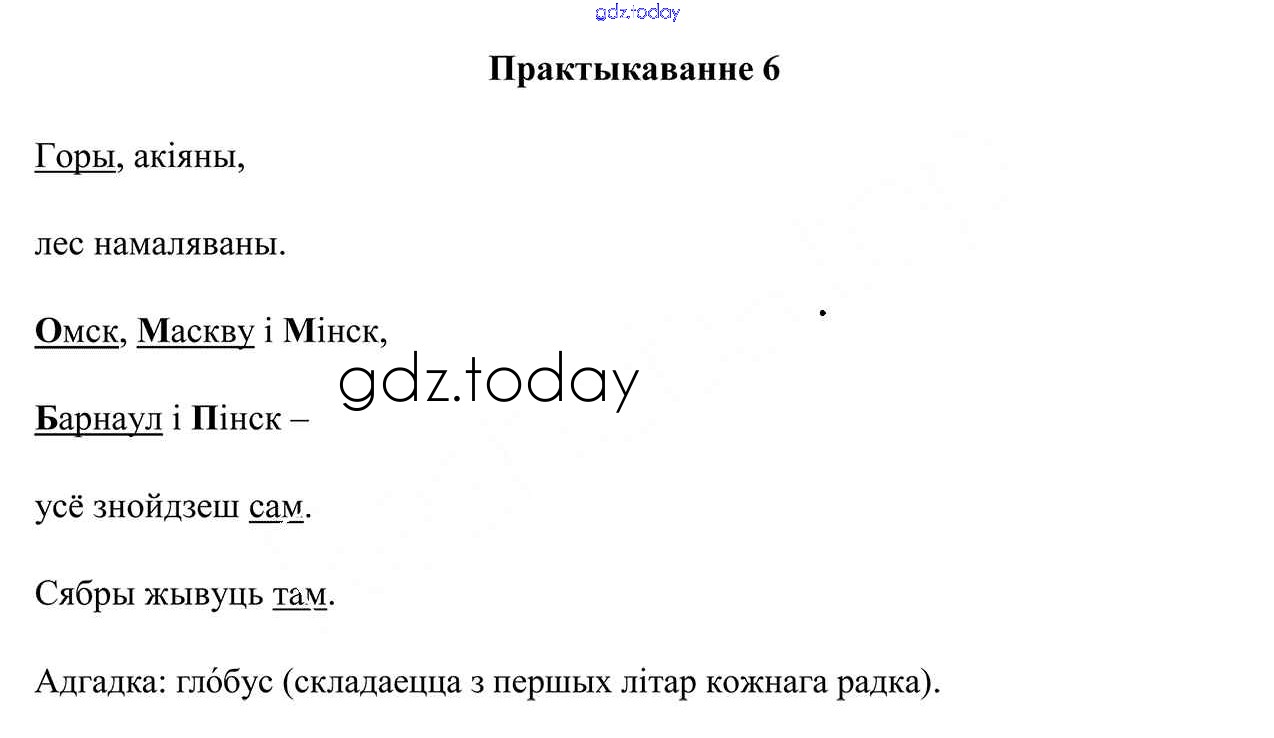 На страницах сайта gdz.today вы найдете учебный и вспомогательный материал, направленный на улучшения знаний школьной программы. ГДЗ - онлайн мир знаний Рашальнік да часткі 1. Практыкаванні 6 Учебнику по Белорусскому языку для 3 класса Свірыдзенка Национальный институт образования 2017