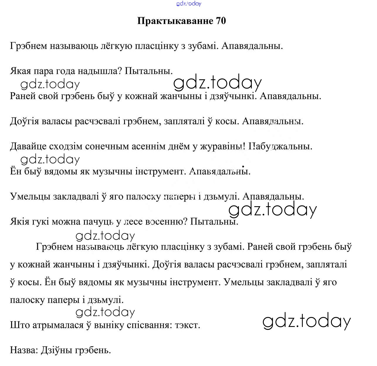 На страницах сайта gdz.today вы найдете учебный и вспомогательный материал, направленный на улучшения знаний школьной программы. ГДЗ - онлайн мир знаний Рашальнік да часткі 1. Практыкаванні 70 Учебнику по Белорусскому языку для 3 класса Свірыдзенка Национальный институт образования 2017