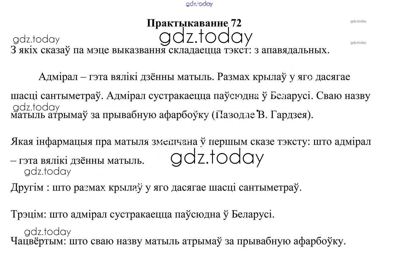 На страницах сайта gdz.today вы найдете учебный и вспомогательный материал, направленный на улучшения знаний школьной программы. ГДЗ - онлайн мир знаний Рашальнік да часткі 1. Практыкаванні 72 Учебнику по Белорусскому языку для 3 класса Свірыдзенка Национальный институт образования 2017