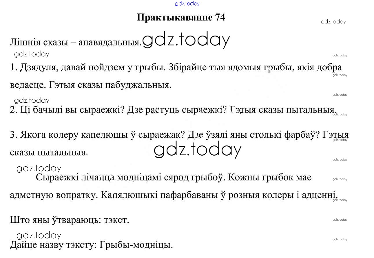 На страницах сайта gdz.today вы найдете учебный и вспомогательный материал, направленный на улучшения знаний школьной программы. ГДЗ - онлайн мир знаний Рашальнік да часткі 1. Практыкаванні 74 Учебнику по Белорусскому языку для 3 класса Свірыдзенка Национальный институт образования 2017