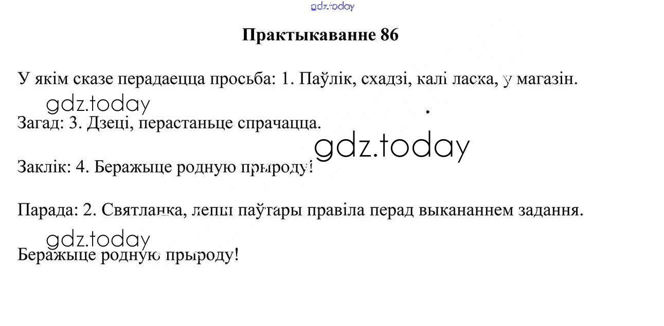 На страницах сайта gdz.today вы найдете учебный и вспомогательный материал, направленный на улучшения знаний школьной программы. ГДЗ - онлайн мир знаний Рашальнік да часткі 1. Практыкаванні 86 Учебнику по Белорусскому языку для 3 класса Свірыдзенка Национальный институт образования 2017