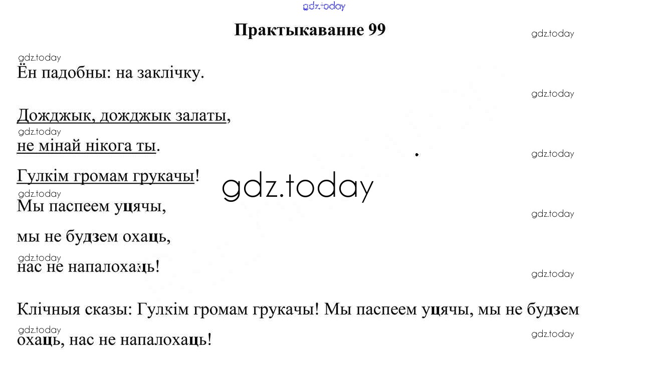На страницах сайта gdz.today вы найдете учебный и вспомогательный материал, направленный на улучшения знаний школьной программы. ГДЗ - онлайн мир знаний Рашальнік да часткі 1. Практыкаванні 99 Учебнику по Белорусскому языку для 3 класса Свірыдзенка Национальный институт образования 2017