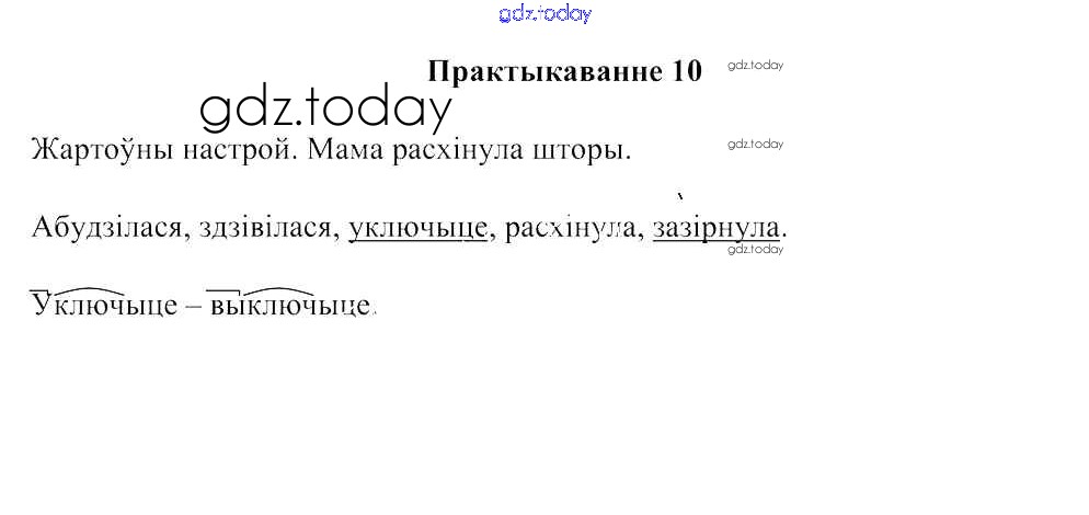 На страницах сайта gdz.today вы найдете учебный и вспомогательный материал, направленный на улучшения знаний школьной программы. ГДЗ - онлайн мир знаний Рашальнік да часткі 2. Практыкаванні 10 Учебнику по Белорусскому языку для 3 класса Свірыдзенка Национальный институт образования 2017