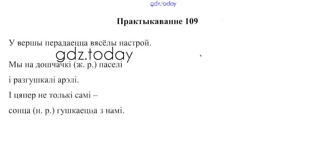 На страницах сайта gdz.today вы найдете учебный и вспомогательный материал, направленный на улучшения знаний школьной программы. ГДЗ - онлайн мир знаний Рашальнік да часткі 2. Практыкаванні 109 Учебнику по Белорусскому языку для 3 класса Свірыдзенка Национальный институт образования 2017