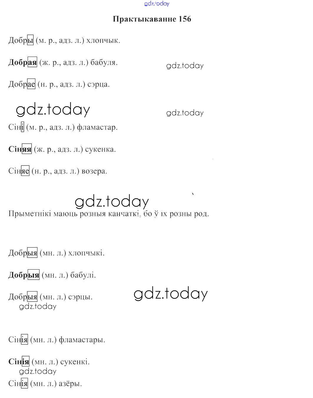На страницах сайта gdz.today вы найдете учебный и вспомогательный материал, направленный на улучшения знаний школьной программы. ГДЗ - онлайн мир знаний Рашальнік да часткі 2. Практыкаванні 156 Учебнику по Белорусскому языку для 3 класса Свірыдзенка Национальный институт образования 2017