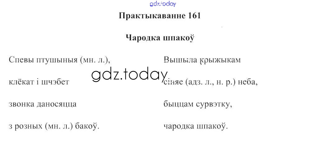 На страницах сайта gdz.today вы найдете учебный и вспомогательный материал, направленный на улучшения знаний школьной программы. ГДЗ - онлайн мир знаний Рашальнік да часткі 2. Практыкаванні 161 Учебнику по Белорусскому языку для 3 класса Свірыдзенка Национальный институт образования 2017