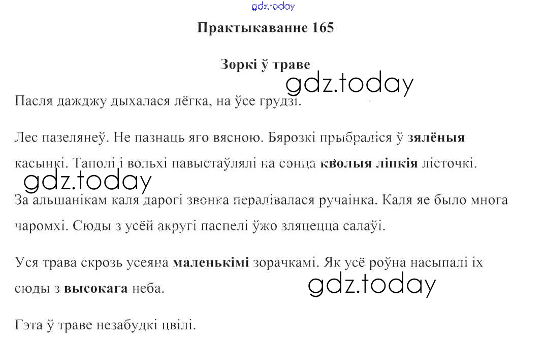 На страницах сайта gdz.today вы найдете учебный и вспомогательный материал, направленный на улучшения знаний школьной программы. ГДЗ - онлайн мир знаний Рашальнік да часткі 2. Практыкаванні 165 Учебнику по Белорусскому языку для 3 класса Свірыдзенка Национальный институт образования 2017