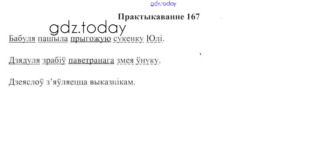 На страницах сайта gdz.today вы найдете учебный и вспомогательный материал, направленный на улучшения знаний школьной программы. ГДЗ - онлайн мир знаний Рашальнік да часткі 2. Практыкаванні 167 Учебнику по Белорусскому языку для 3 класса Свірыдзенка Национальный институт образования 2017