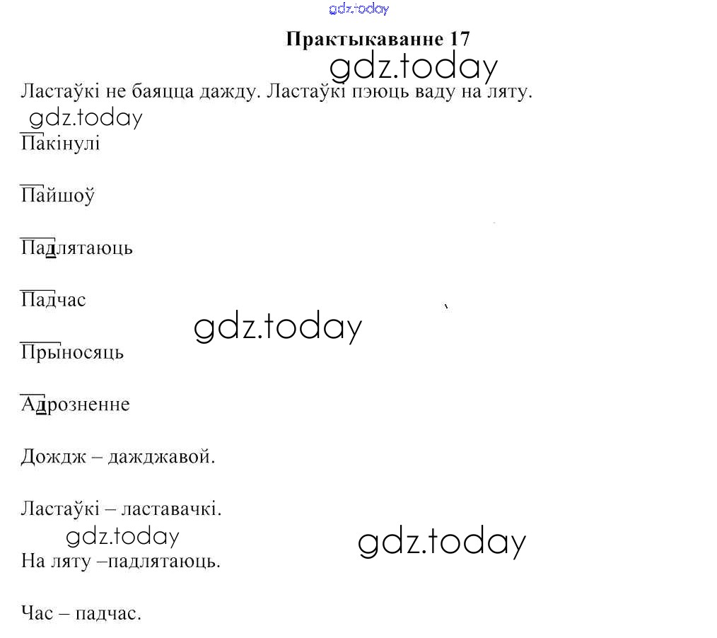 На страницах сайта gdz.today вы найдете учебный и вспомогательный материал, направленный на улучшения знаний школьной программы. ГДЗ - онлайн мир знаний Рашальнік да часткі 2. Практыкаванні 17 Учебнику по Белорусскому языку для 3 класса Свірыдзенка Национальный институт образования 2017