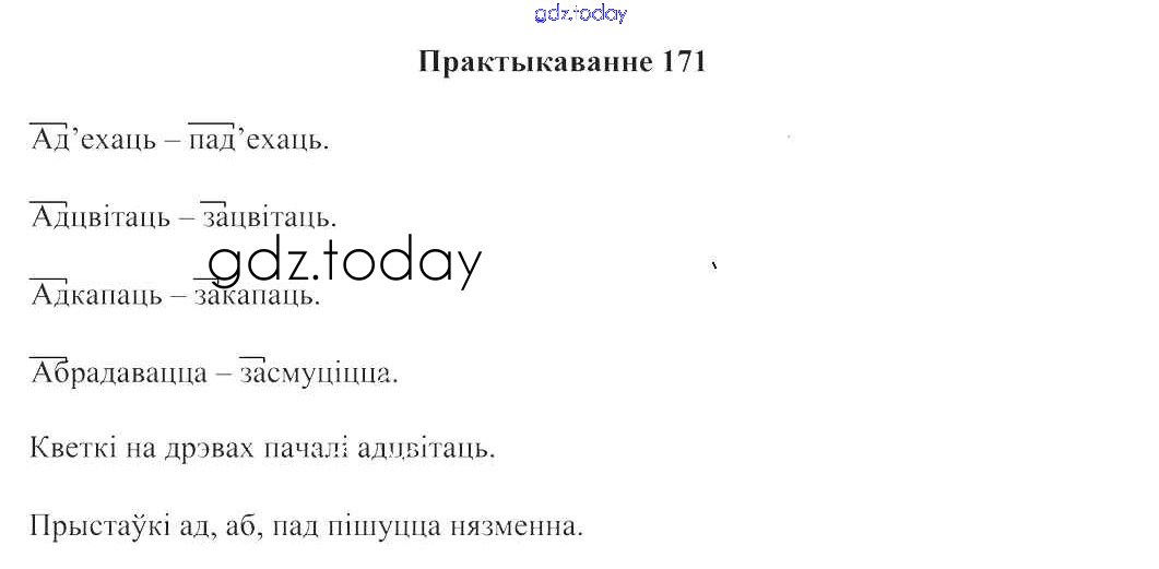 На страницах сайта gdz.today вы найдете учебный и вспомогательный материал, направленный на улучшения знаний школьной программы. ГДЗ - онлайн мир знаний Рашальнік да часткі 2. Практыкаванні 171 Учебнику по Белорусскому языку для 3 класса Свірыдзенка Национальный институт образования 2017