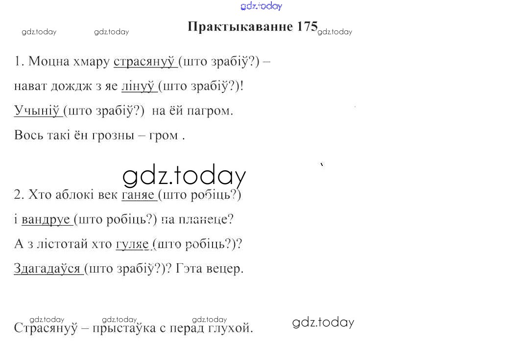 На страницах сайта gdz.today вы найдете учебный и вспомогательный материал, направленный на улучшения знаний школьной программы. ГДЗ - онлайн мир знаний Рашальнік да часткі 2. Практыкаванні 175 Учебнику по Белорусскому языку для 3 класса Свірыдзенка Национальный институт образования 2017