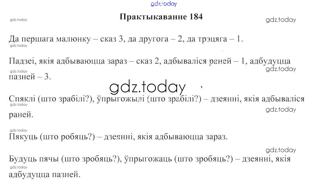 На страницах сайта gdz.today вы найдете учебный и вспомогательный материал, направленный на улучшения знаний школьной программы. ГДЗ - онлайн мир знаний Рашальнік да часткі 2. Практыкаванні 184 Учебнику по Белорусскому языку для 3 класса Свірыдзенка Национальный институт образования 2017