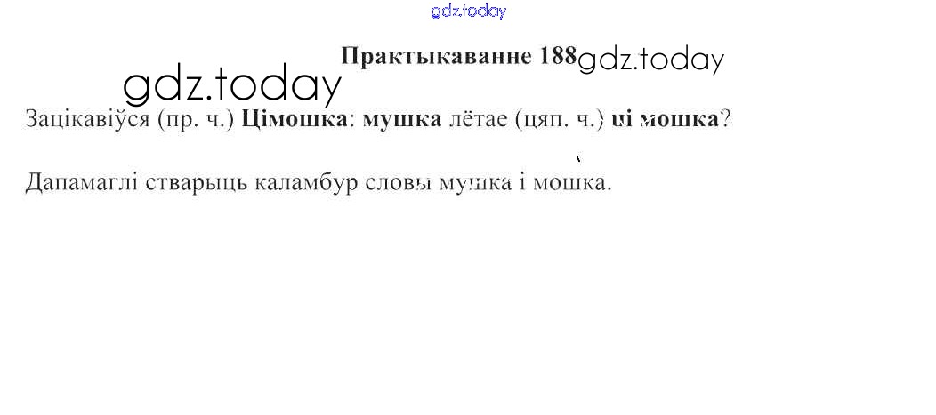 На страницах сайта gdz.today вы найдете учебный и вспомогательный материал, направленный на улучшения знаний школьной программы. ГДЗ - онлайн мир знаний Рашальнік да часткі 2. Практыкаванні 188 Учебнику по Белорусскому языку для 3 класса Свірыдзенка Национальный институт образования 2017