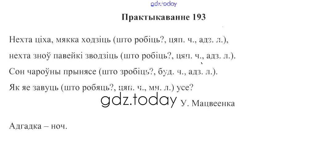 На страницах сайта gdz.today вы найдете учебный и вспомогательный материал, направленный на улучшения знаний школьной программы. ГДЗ - онлайн мир знаний Рашальнік да часткі 2. Практыкаванні 193 Учебнику по Белорусскому языку для 3 класса Свірыдзенка Национальный институт образования 2017