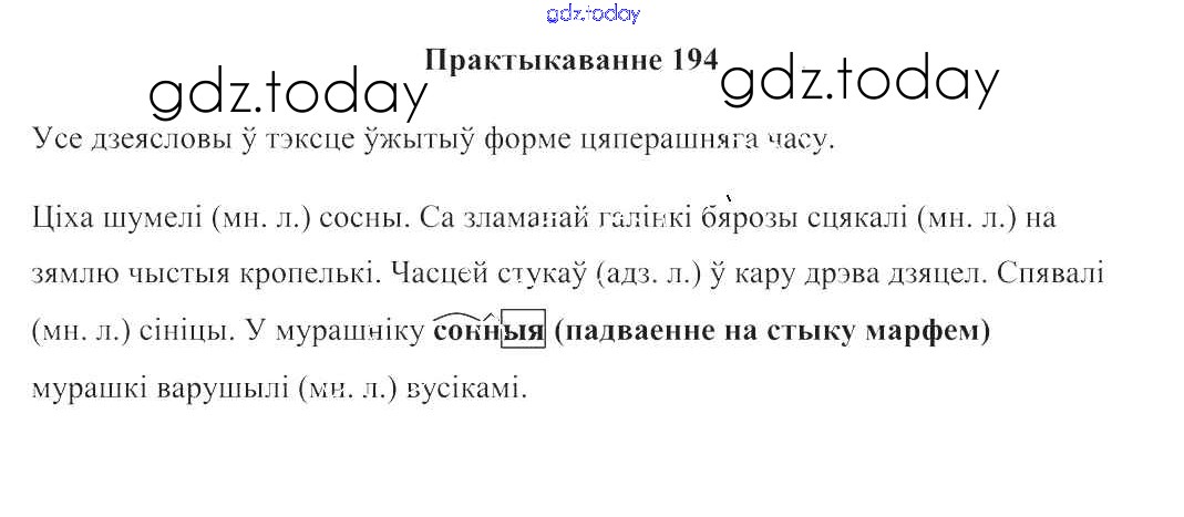 На страницах сайта gdz.today вы найдете учебный и вспомогательный материал, направленный на улучшения знаний школьной программы. ГДЗ - онлайн мир знаний Рашальнік да часткі 2. Практыкаванні 194 Учебнику по Белорусскому языку для 3 класса Свірыдзенка Национальный институт образования 2017