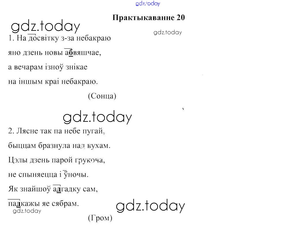 На страницах сайта gdz.today вы найдете учебный и вспомогательный материал, направленный на улучшения знаний школьной программы. ГДЗ - онлайн мир знаний Рашальнік да часткі 2. Практыкаванні 20 Учебнику по Белорусскому языку для 3 класса Свірыдзенка Национальный институт образования 2017