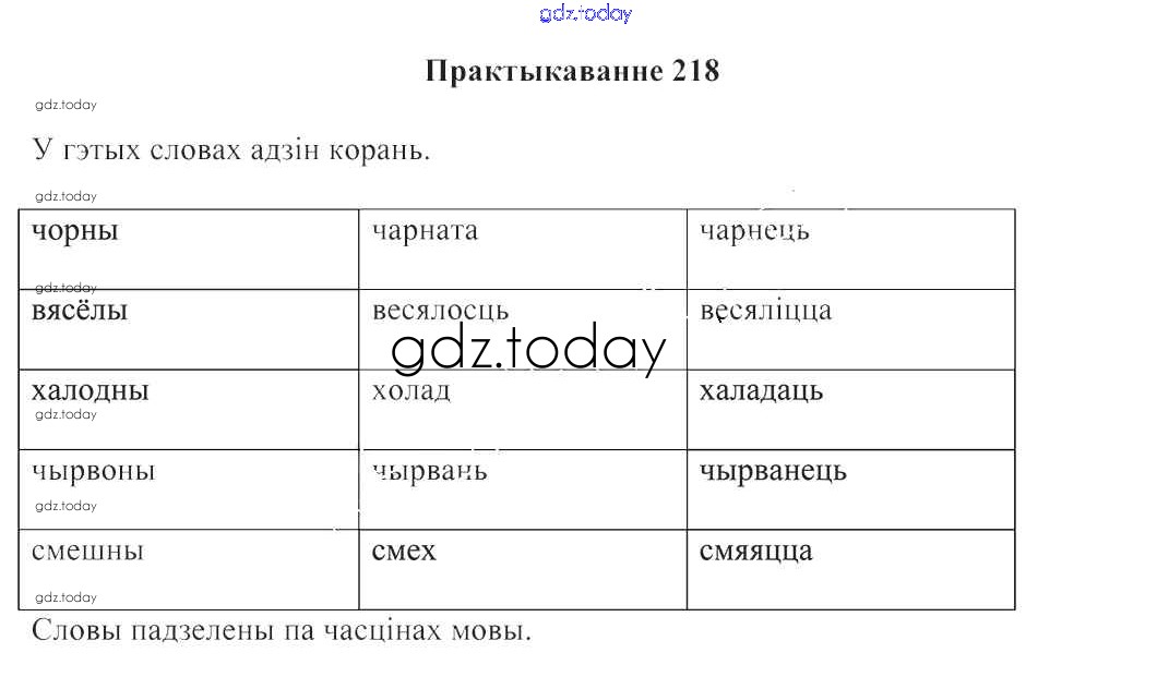 На страницах сайта gdz.today вы найдете учебный и вспомогательный материал, направленный на улучшения знаний школьной программы. ГДЗ - онлайн мир знаний Рашальнік да часткі 2. Практыкаванні 218 Учебнику по Белорусскому языку для 3 класса Свірыдзенка Национальный институт образования 2017