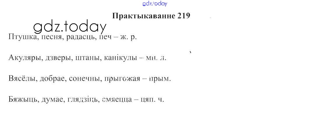 На страницах сайта gdz.today вы найдете учебный и вспомогательный материал, направленный на улучшения знаний школьной программы. ГДЗ - онлайн мир знаний Рашальнік да часткі 2. Практыкаванні 219 Учебнику по Белорусскому языку для 3 класса Свірыдзенка Национальный институт образования 2017