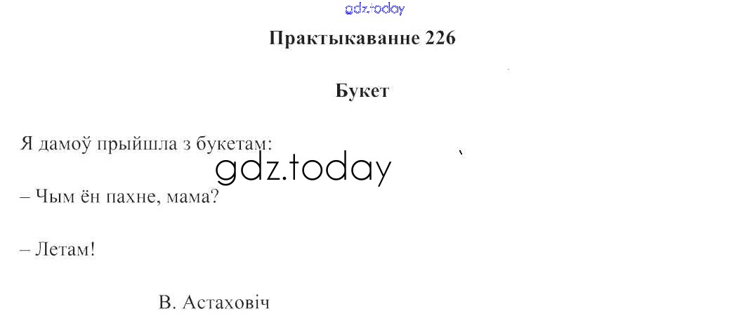 На страницах сайта gdz.today вы найдете учебный и вспомогательный материал, направленный на улучшения знаний школьной программы. ГДЗ - онлайн мир знаний Рашальнік да часткі 2. Практыкаванні 226 Учебнику по Белорусскому языку для 3 класса Свірыдзенка Национальный институт образования 2017