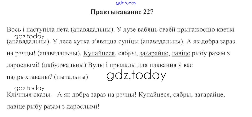 На страницах сайта gdz.today вы найдете учебный и вспомогательный материал, направленный на улучшения знаний школьной программы. ГДЗ - онлайн мир знаний Рашальнік да часткі 2. Практыкаванні 227 Учебнику по Белорусскому языку для 3 класса Свірыдзенка Национальный институт образования 2017