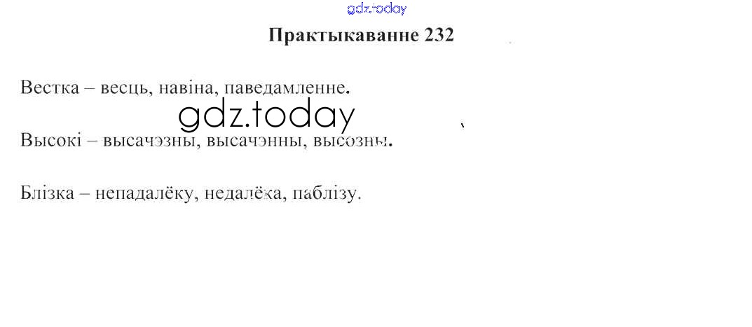 На страницах сайта gdz.today вы найдете учебный и вспомогательный материал, направленный на улучшения знаний школьной программы. ГДЗ - онлайн мир знаний Рашальнік да часткі 2. Практыкаванні 232 Учебнику по Белорусскому языку для 3 класса Свірыдзенка Национальный институт образования 2017