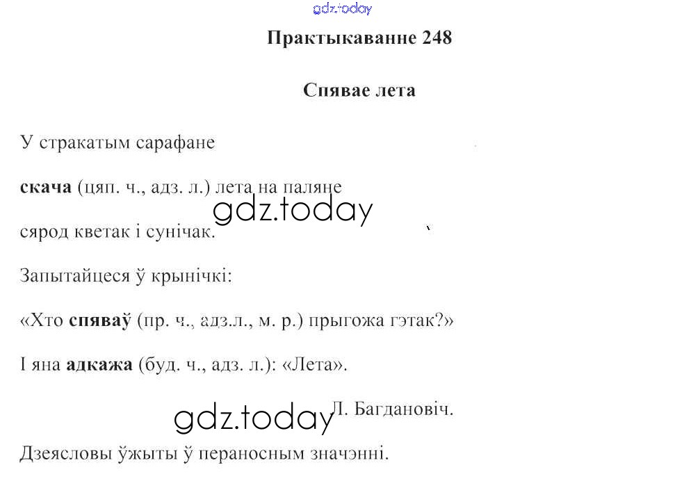 На страницах сайта gdz.today вы найдете учебный и вспомогательный материал, направленный на улучшения знаний школьной программы. ГДЗ - онлайн мир знаний Рашальнік да часткі 2. Практыкаванні 248 Учебнику по Белорусскому языку для 3 класса Свірыдзенка Национальный институт образования 2017