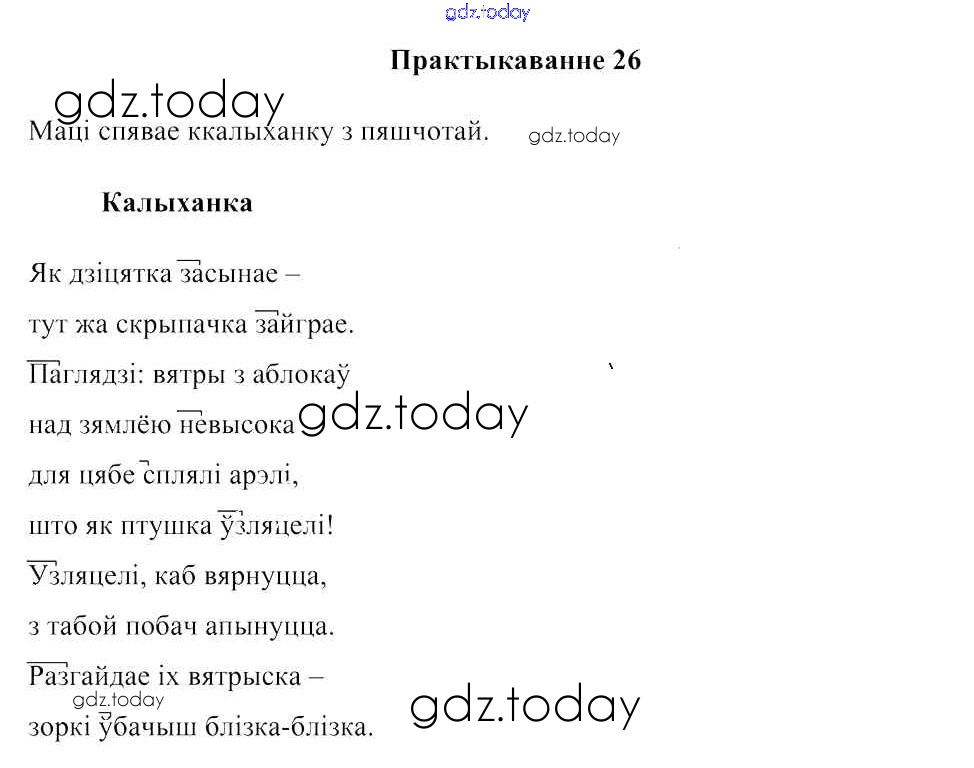 На страницах сайта gdz.today вы найдете учебный и вспомогательный материал, направленный на улучшения знаний школьной программы. ГДЗ - онлайн мир знаний Рашальнік да часткі 2. Практыкаванні 26 Учебнику по Белорусскому языку для 3 класса Свірыдзенка Национальный институт образования 2017