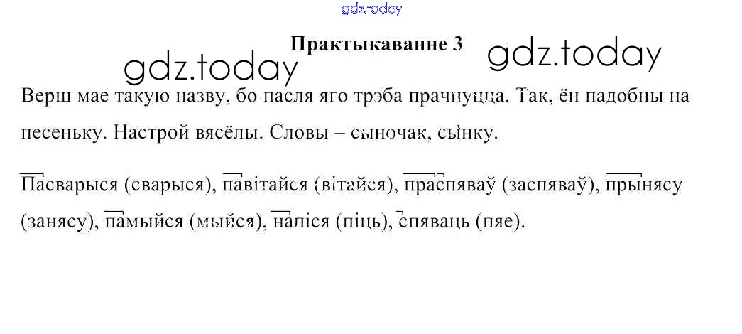 На страницах сайта gdz.today вы найдете учебный и вспомогательный материал, направленный на улучшения знаний школьной программы. ГДЗ - онлайн мир знаний Рашальнік да часткі 2. Практыкаванні 3 Учебнику по Белорусскому языку для 3 класса Свірыдзенка Национальный институт образования 2017