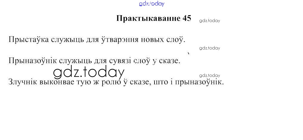 На страницах сайта gdz.today вы найдете учебный и вспомогательный материал, направленный на улучшения знаний школьной программы. ГДЗ - онлайн мир знаний Рашальнік да часткі 2. Практыкаванні 45 Учебнику по Белорусскому языку для 3 класса Свірыдзенка Национальный институт образования 2017