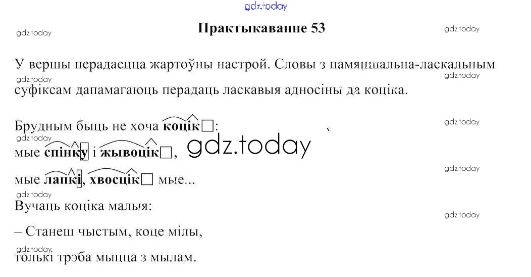 На страницах сайта gdz.today вы найдете учебный и вспомогательный материал, направленный на улучшения знаний школьной программы. ГДЗ - онлайн мир знаний Рашальнік да часткі 2. Практыкаванні 53 Учебнику по Белорусскому языку для 3 класса Свірыдзенка Национальный институт образования 2017