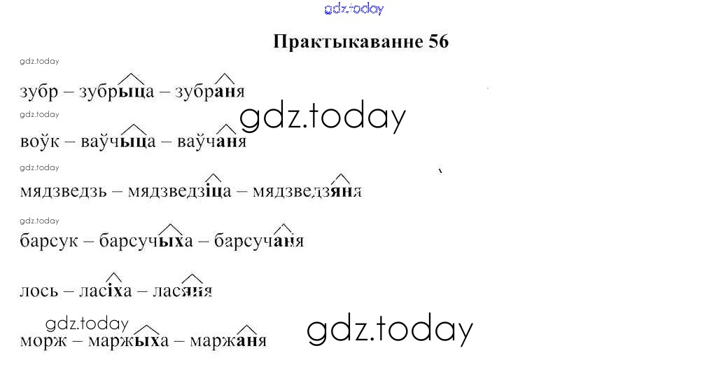 На страницах сайта gdz.today вы найдете учебный и вспомогательный материал, направленный на улучшения знаний школьной программы. ГДЗ - онлайн мир знаний Рашальнік да часткі 2. Практыкаванні 56 Учебнику по Белорусскому языку для 3 класса Свірыдзенка Национальный институт образования 2017