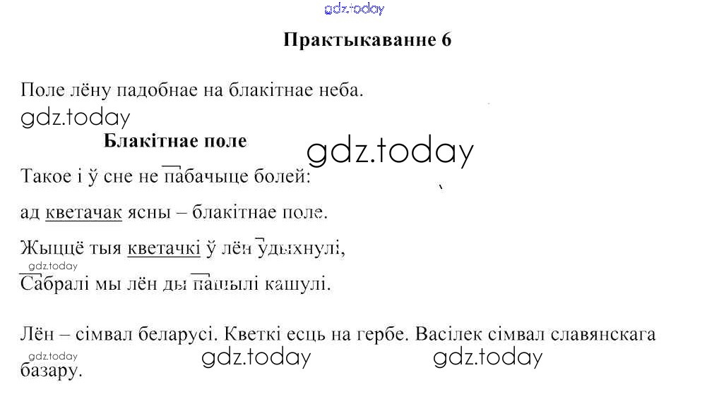 На страницах сайта gdz.today вы найдете учебный и вспомогательный материал, направленный на улучшения знаний школьной программы. ГДЗ - онлайн мир знаний Рашальнік да часткі 2. Практыкаванні 6 Учебнику по Белорусскому языку для 3 класса Свірыдзенка Национальный институт образования 2017