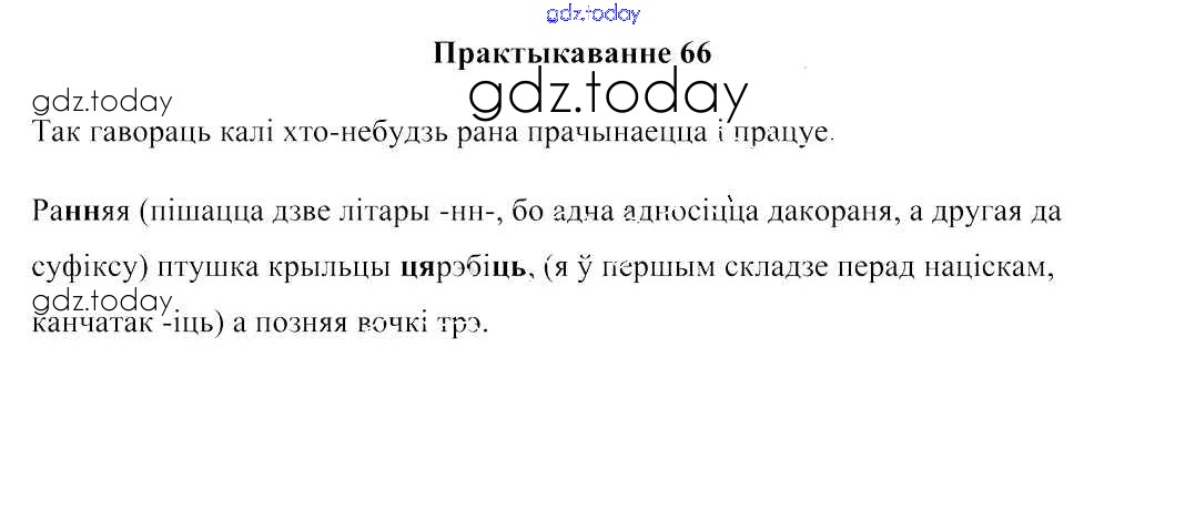 На страницах сайта gdz.today вы найдете учебный и вспомогательный материал, направленный на улучшения знаний школьной программы. ГДЗ - онлайн мир знаний Рашальнік да часткі 2. Практыкаванні 66 Учебнику по Белорусскому языку для 3 класса Свірыдзенка Национальный институт образования 2017