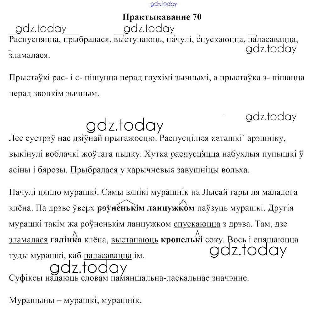 На страницах сайта gdz.today вы найдете учебный и вспомогательный материал, направленный на улучшения знаний школьной программы. ГДЗ - онлайн мир знаний Рашальнік да часткі 2. Практыкаванні 70 Учебнику по Белорусскому языку для 3 класса Свірыдзенка Национальный институт образования 2017