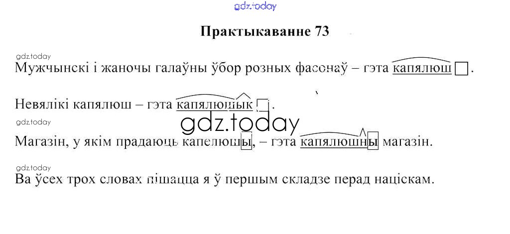 На страницах сайта gdz.today вы найдете учебный и вспомогательный материал, направленный на улучшения знаний школьной программы. ГДЗ - онлайн мир знаний Рашальнік да часткі 2. Практыкаванні 73 Учебнику по Белорусскому языку для 3 класса Свірыдзенка Национальный институт образования 2017