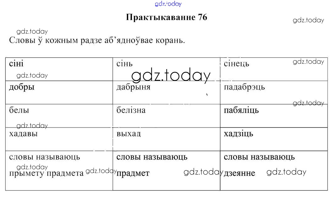 На страницах сайта gdz.today вы найдете учебный и вспомогательный материал, направленный на улучшения знаний школьной программы. ГДЗ - онлайн мир знаний Рашальнік да часткі 2. Практыкаванні 76 Учебнику по Белорусскому языку для 3 класса Свірыдзенка Национальный институт образования 2017