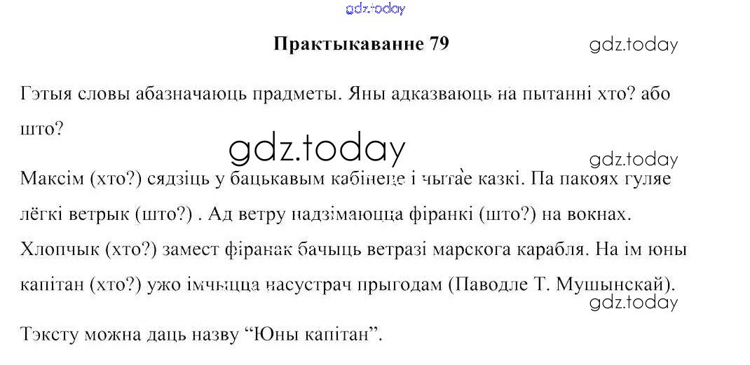 На страницах сайта gdz.today вы найдете учебный и вспомогательный материал, направленный на улучшения знаний школьной программы. ГДЗ - онлайн мир знаний Рашальнік да часткі 2. Практыкаванні 79 Учебнику по Белорусскому языку для 3 класса Свірыдзенка Национальный институт образования 2017