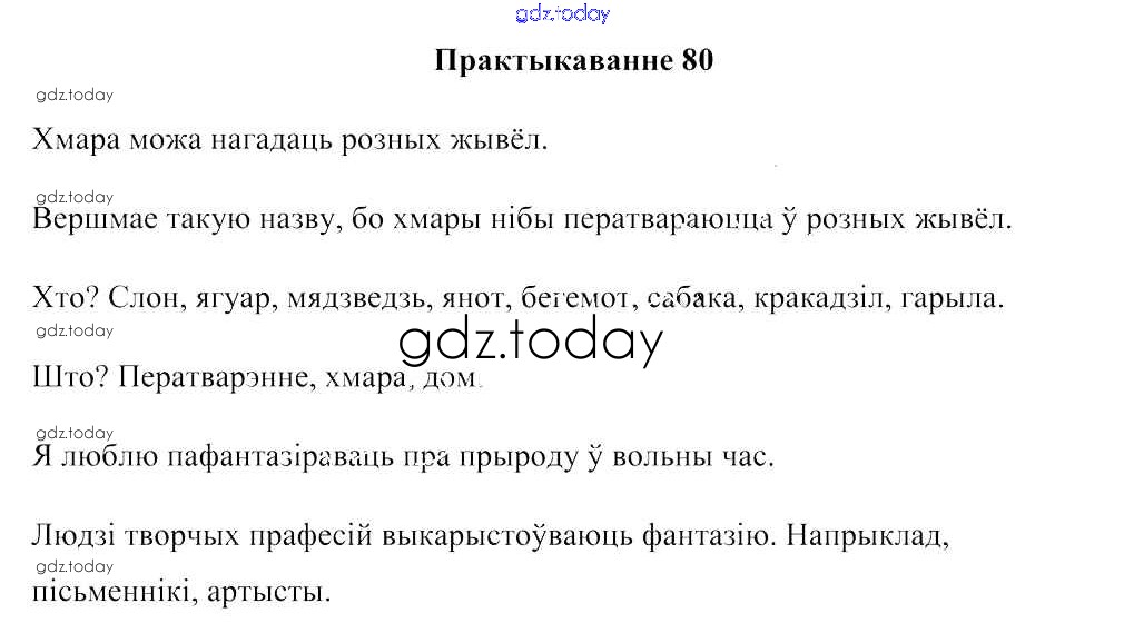 На страницах сайта gdz.today вы найдете учебный и вспомогательный материал, направленный на улучшения знаний школьной программы. ГДЗ - онлайн мир знаний Рашальнік да часткі 2. Практыкаванні 80 Учебнику по Белорусскому языку для 3 класса Свірыдзенка Национальный институт образования 2017
