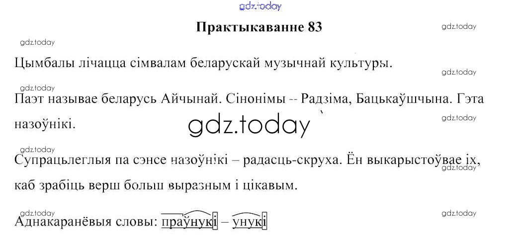На страницах сайта gdz.today вы найдете учебный и вспомогательный материал, направленный на улучшения знаний школьной программы. ГДЗ - онлайн мир знаний Рашальнік да часткі 2. Практыкаванні 83 Учебнику по Белорусскому языку для 3 класса Свірыдзенка Национальный институт образования 2017