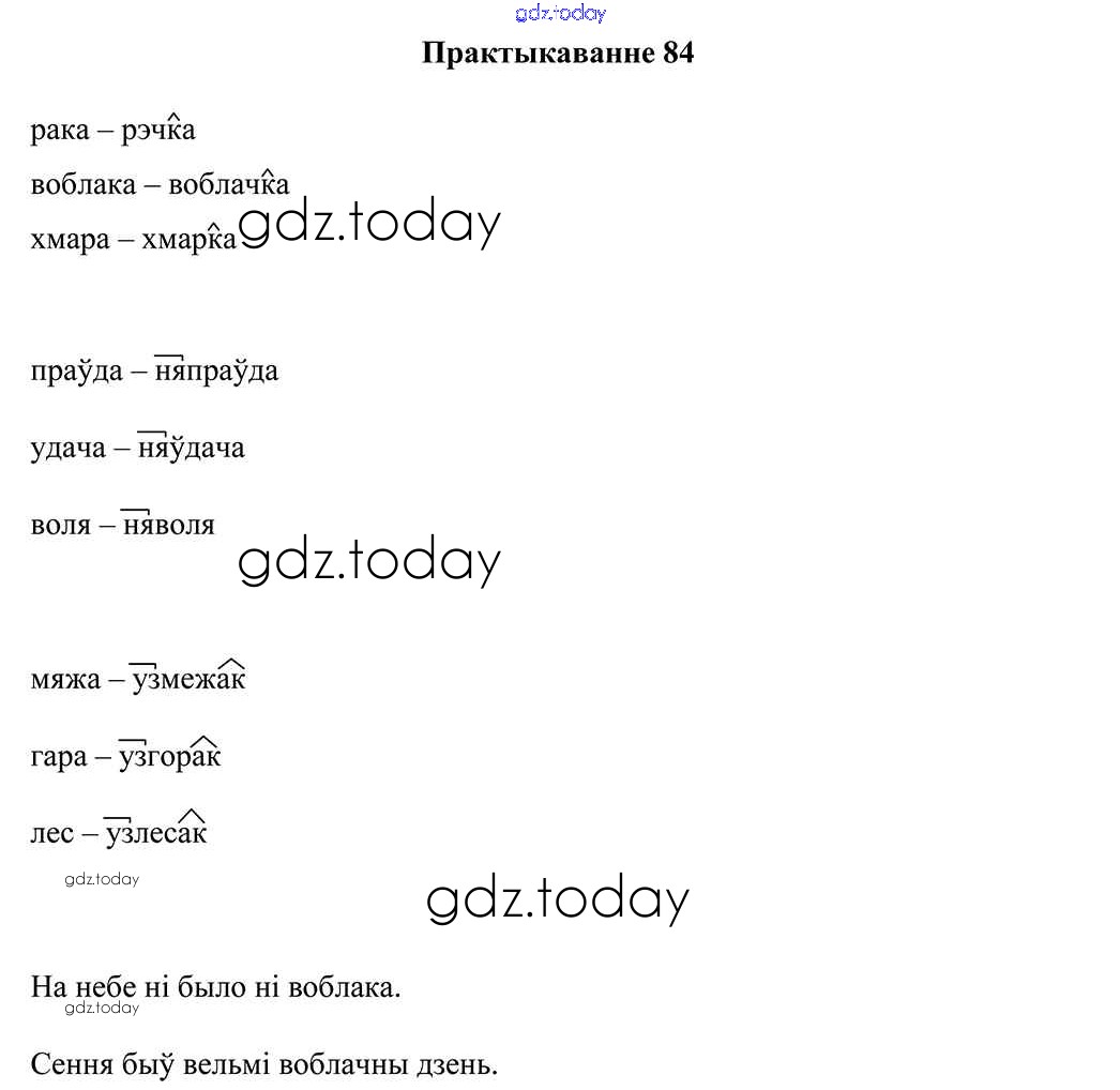 На страницах сайта gdz.today вы найдете учебный и вспомогательный материал, направленный на улучшения знаний школьной программы. ГДЗ - онлайн мир знаний Рашальнік да часткі 2. Практыкаванні 84 Учебнику по Белорусскому языку для 3 класса Свірыдзенка Национальный институт образования 2017