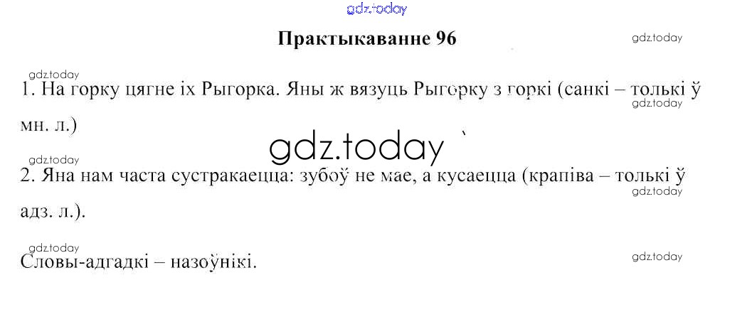 На страницах сайта gdz.today вы найдете учебный и вспомогательный материал, направленный на улучшения знаний школьной программы. ГДЗ - онлайн мир знаний Рашальнік да часткі 2. Практыкаванні 96 Учебнику по Белорусскому языку для 3 класса Свірыдзенка Национальный институт образования 2017