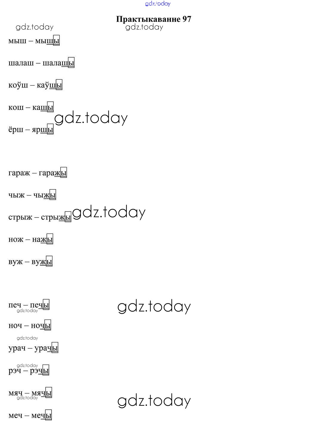 На страницах сайта gdz.today вы найдете учебный и вспомогательный материал, направленный на улучшения знаний школьной программы. ГДЗ - онлайн мир знаний Рашальнік да часткі 2. Практыкаванні 97 Учебнику по Белорусскому языку для 3 класса Свірыдзенка Национальный институт образования 2017