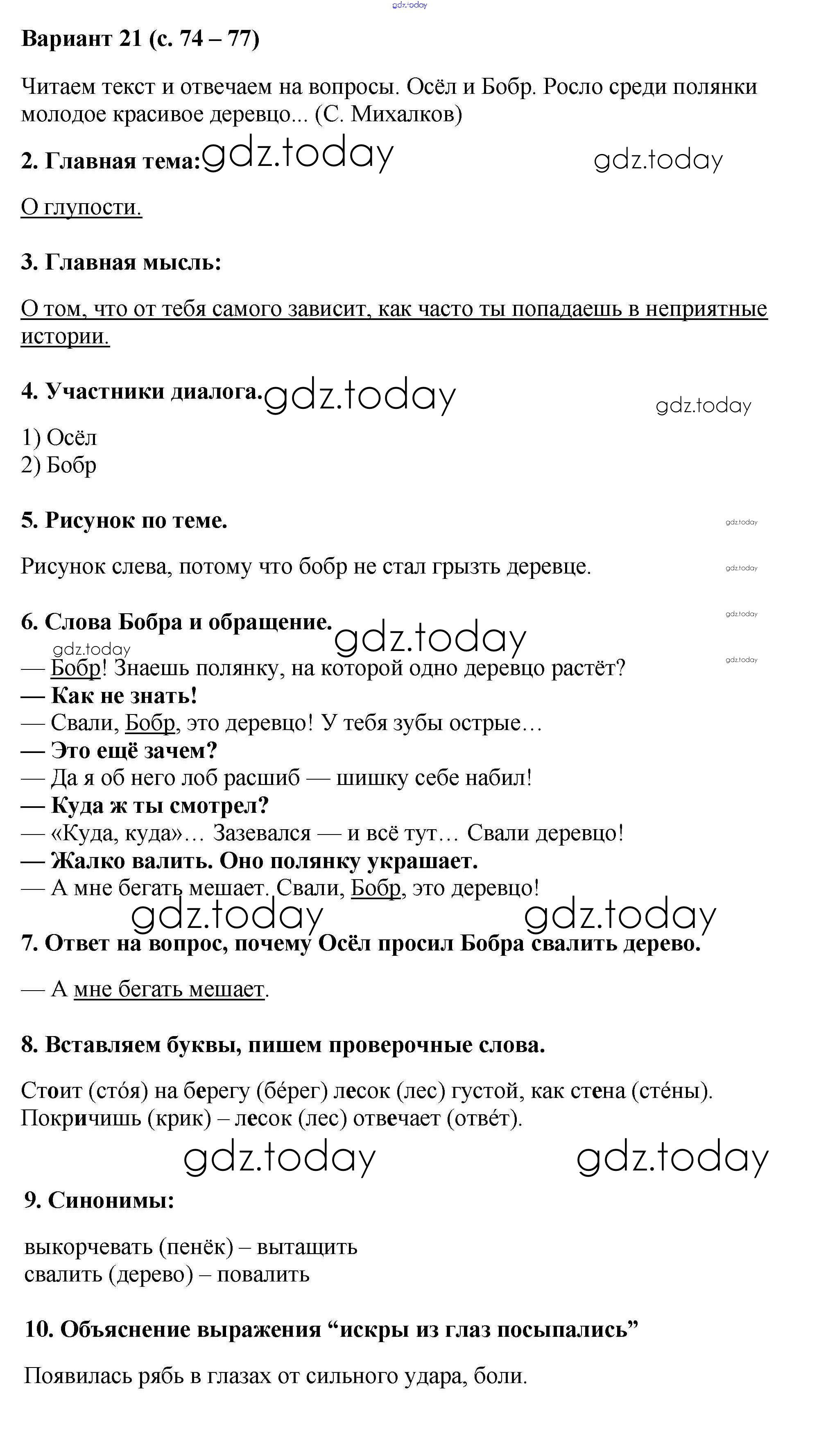 На страницах сайта gdz.today вы найдете учебный и вспомогательный материал, направленный на улучшения знаний школьной программы. ГДЗ - онлайн мир знаний Варианты (решение) 21 Работе с текстом по Чтению для 3 класса Крылова Экзамен УМК 2020